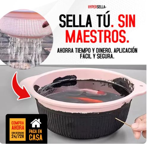 Hypersella crea una capa flexible e impermeable que detiene filtraciones al instante. Su fórmula alemana se adhiere a muros, techos, cañerías, pisos, metal o madera, garantizando un sellado duradero.